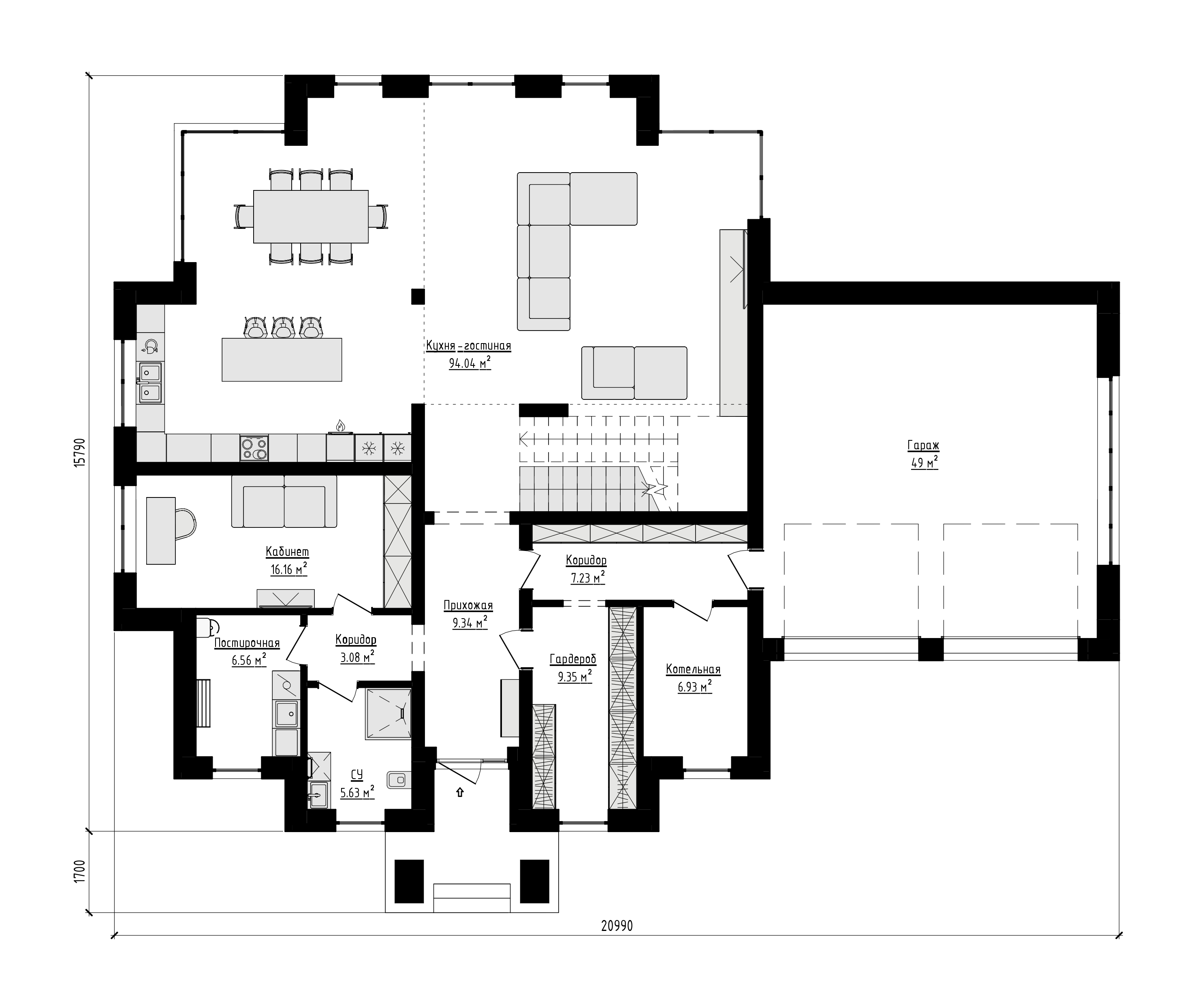 - Устройство инженерных сетей внутри дома (включая котельное оборудование, вводные и распределительные устройства электропитания)