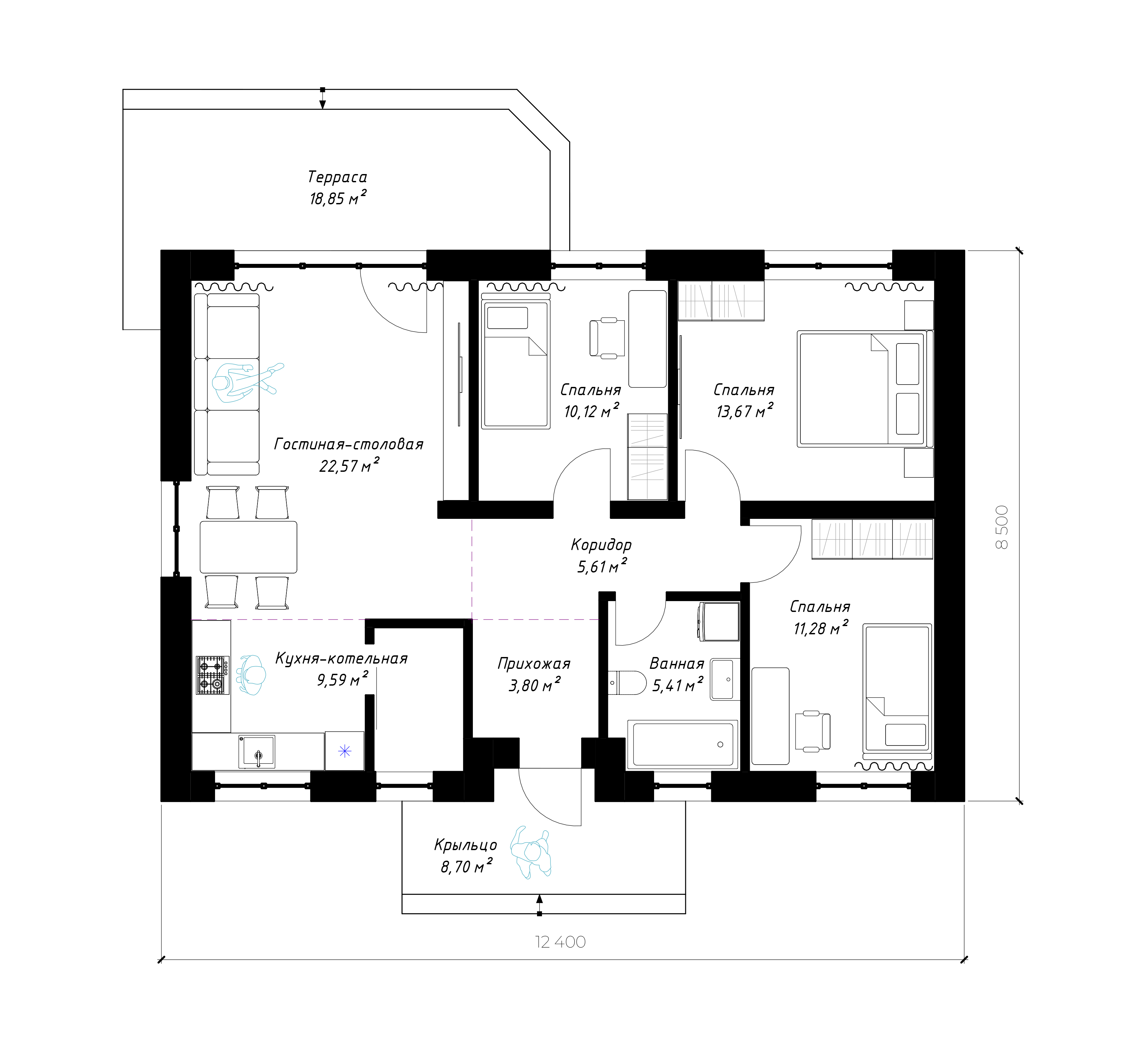 - В этой стадии, дополнительно к предыдущей, мы создаем интерьер вашего дома согласно разработанному дизайн-проекту