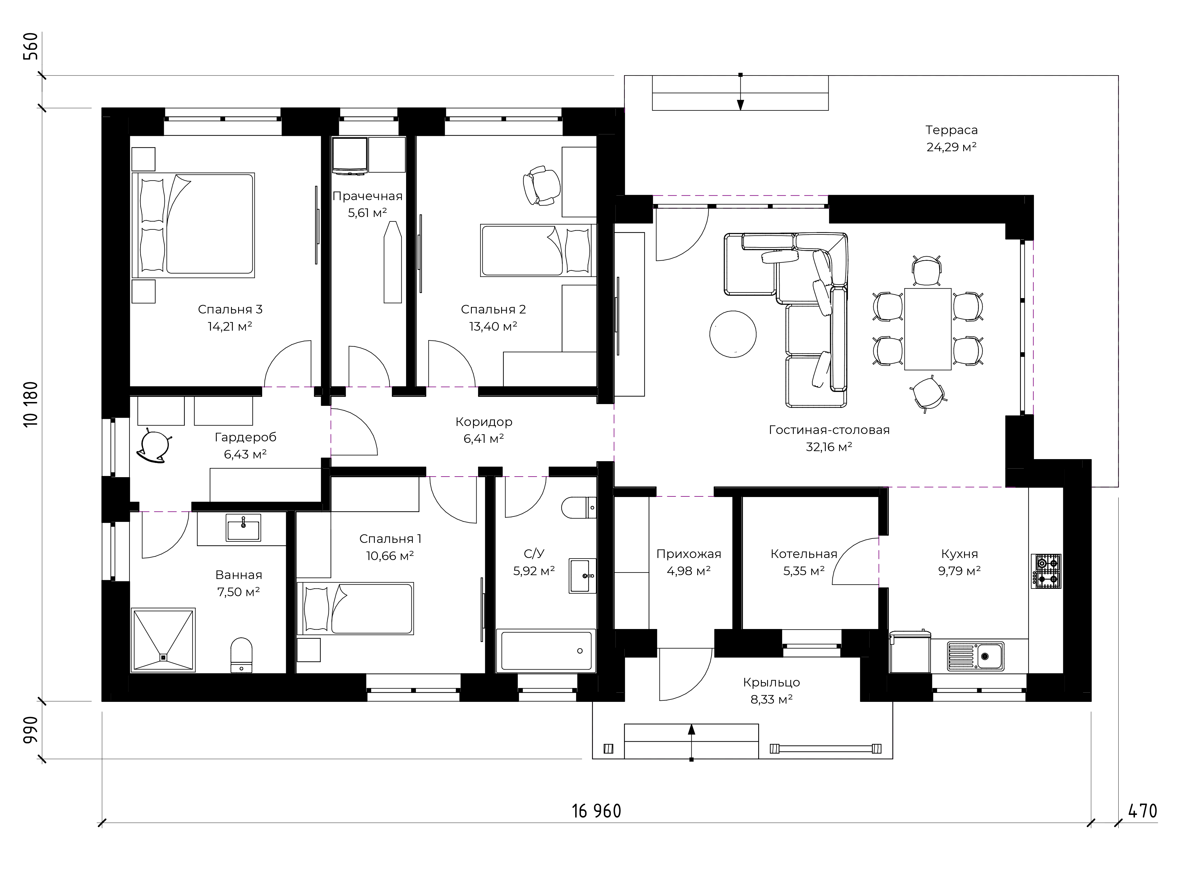- В этой стадии, дополнительно к предыдущей, мы создаем интерьер вашего дома согласно разработанному дизайн-проекту